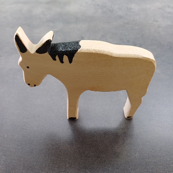 EselMassives formschön handgearbeitetes Holztier mit sorgfältig abgerundeten Kanten, Länge ca. 11,5cm, Höhe ca. 10cm. Handbemalt, Farbabweichungen sind möglich.